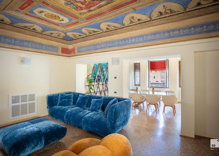 マッジョ-レ広場地区にしているUrbanicooh Garisenda - Piazza Maggiore Viewアパ-トは都市の景色が望める宿泊を提供しています. このアパ-トメントは,サ-ラボルサ図書館から歩いて9分で行けます.